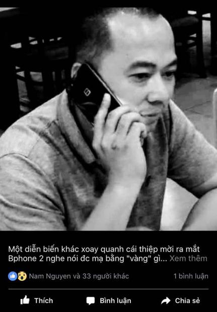 Hình ảnh anh Đoàn Văn Hiểu Em, Giám đốc Ngành hàng Viễn thông Di động của Thế Giới Di Động, đang trên tay một chiếc smartphone lạ và được đồn đoán là Bphone 2. Bởi phía sau máy có logo chữ B đặc trưng
