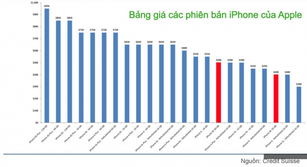 Biểu đồ bảng giá các phiên bản iPhone hiện nay