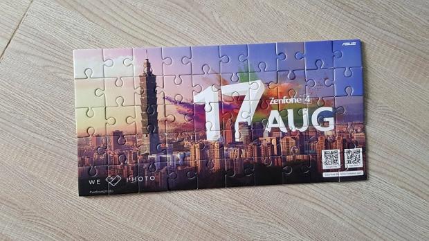 Cụ thể hơn, thiệp mời ZenFone 4 series được tạo nên từ 50 mảnh ghép, và mình phải mất khoảng 30 phút để ghép tấm thiệp này. Sau khi hoàn tất việc ghép thiệp, nó để lộ thông điệp gồm: Ngày ra mắt sản phẩm (17/08/2017), khung cảnh xung quanh là thành phố Đài Loan. Còn bên dưới cạnh trái là thông điệp We Love Photo.