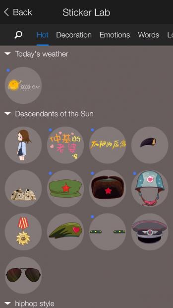 Chạy ứng dụng và chọn sticker Hậu duệ mặt trời ngay trên giao diện
