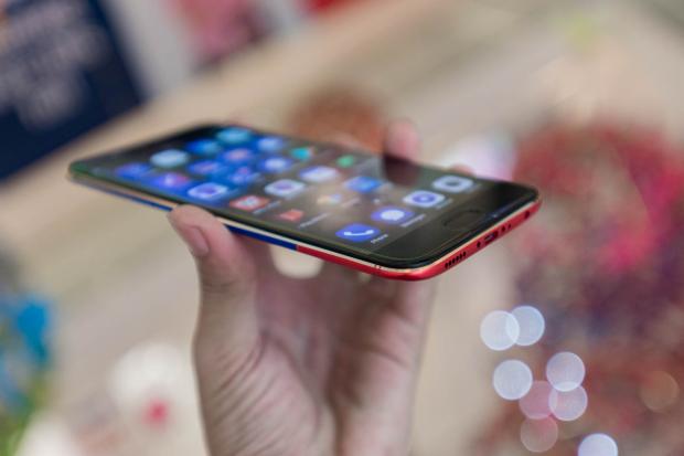 Cạnh dưới của máy với cảm biến vân tay và các nút điều khiển cảm ứng. Được biết OPPO R11 phiên bản Barca đang được trưng bày duy nhất tại Brand Shop OPPO ở Crescent Mall, Q7, TP.HCM.