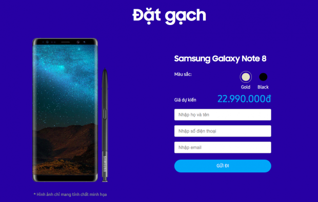 Đặc biệt, website của FPTShop còn cho biết, mức giá dự kiến của Galaxy Note 8 tại thị trường Việt Nam sẽ khoảng 22.990.000VNĐ. Hệ thống này cũng bắt đầu cho người dùng đặt gạch với quà tặng đặc biệt trị giá 4 triệu đồng cùng cơ hội trúng thẻ thanh toán quốc tế(Visa) trị giá 50 triệu đồng.