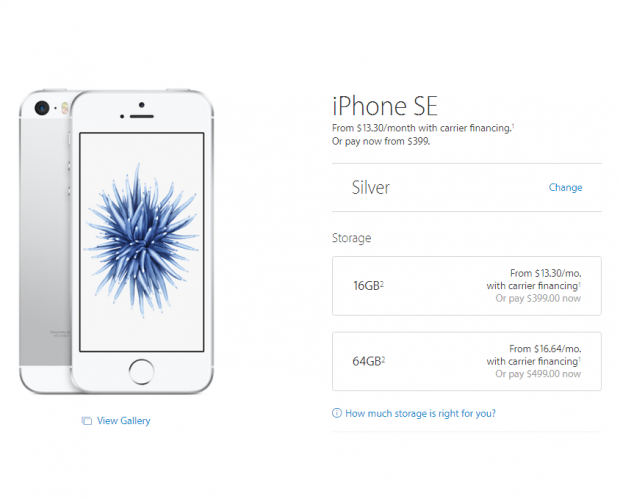 iPhone SE chỉ được Apple bán với hai phiên bản 16GB và 64GB. Sẽ không có một phiên bản 128GB cho những người có nhu cầu cao về dung lượng bộ nhớ như iPhone 6s.