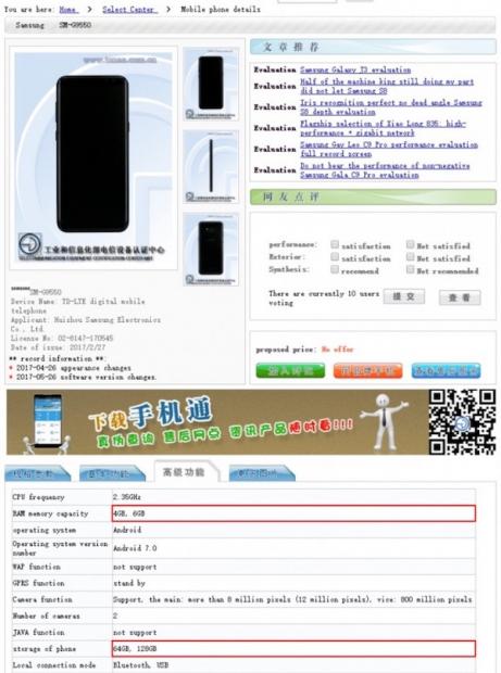 Phiên bản của Galaxy Note 8 với 4GB RAM đã được chứng nhận bởi cơ quan quản lý TENAA của Trung Quốc, bản này cũng không có tuỳ chọn dung lượng lưu trữ 256GB. Ngoài phiên bản đó, Samsung còn dự định cho ra mắt thêm phiên bản 8GB RAM đi kèm với bộ nhớ trong 256GB cho thị trường Hàn Quốc.