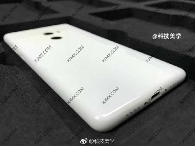Như bạn có thể thấy, mặt lưng của thiết bị được chế tạo từ một loại gốm trắng với hai vòng tròn nằm phía trên và cân đối ở giữa thân máy. Điều này có nghĩa, Mi Mix 2 sẽ được trang bị camera kép hoặc cảm biến vân tay sẽ được đặt ngay dưới một camera chính.