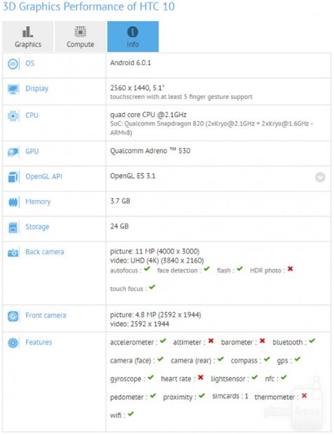 Sau khi có thông tin cho rằng, HTC 10 sẽ có thêm biến thể sử dụng chip Snapdragon 652 thì mới đây, toàn bộ thông số kỹ thuật của thiết bị này đã lộ diện thông qua công cụ kiểm tra hiệu năng GFXBench.