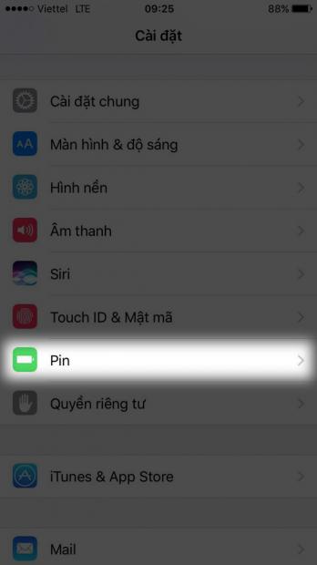 Bước 1: Mở ứng dụng Cài đặt và vào phần Pin.