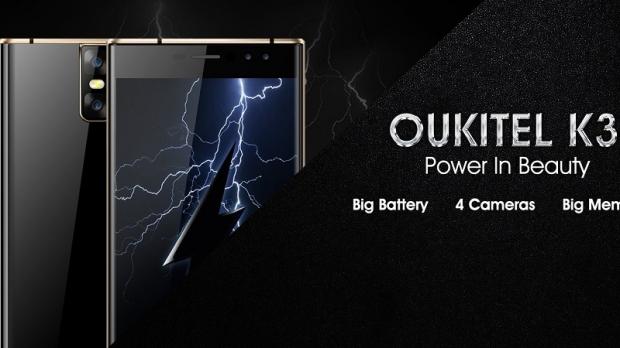 Về cấu hình, OUKITEL K3 có màn hình Full HD 5.5 inch, dùng chip 8 nhân MTK6750T, kết hợp với RAM 4GB, ROM 64GB (hỗ trợ microSD 128GB) và chạy Android 7.