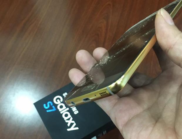 Chiếc Galaxy S7 mạ vàng 24K đầu tiên trên thế giới đã bị rơi vỡ màn hình ngay khi tới tay khách hàng và không thể khởi động lên nữa.