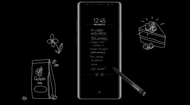Tính năng ghi chú ngay trên màn hình tắt đã được Samsung tích hợp từ Galaxy Note 5. Nhưng ở thế hệ thứ 8, hãng đã cho phép người dùng ghi chú lên đến 100 trang và nếu cần thiết có thể ghim ngay lên màn hình luôn bật Always On để không bị quên những việc cần làm.