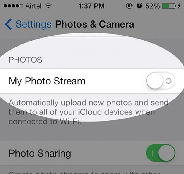 Nếu không thật sự cần thiết thì tốt nhất là bạn nên tắt tính năng này đi để tiết kiệm lưu lượng lưu trữ trên máy, bằng cách truy cập vào Settings (Cài đặt) > Photos & Camera rồi tắt mục 'My Photo Stream'.