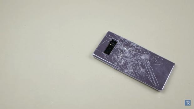 Với những cú đánh mạnh, màn hình của Galaxy Note 8 đã bắtđầu bị vỡ. Tuy nhiên, chức năng cảm ứng và hiển thị của máy vẫn hoạt động hết sức bình thường.