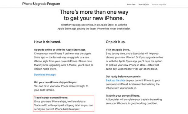 Theo như nội dung, người dùng tại Mỹ khi đăng ký sẽ nhận ngay một bộ Trade-in Kit. Cách đổi cũng khá đơn giản, chỉ cần đóng gói iPhone cũ đã sử dụng và gửi cho Apple bằng đường bưu điện thay vì phải đến tận Apple Store như trước kia.