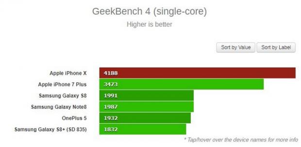 Theo gsmarena, hiệu năng của iPhone X đã vượt mặt tất cả những mẫu smartphone Android đình đám nhất hiện nay. Nguồn tin cũng cho rằng điểm chuẩn của chip sẽ không thể đạt chính xác tuyệt đối ở các nền tảng khác nhau nhưng A11 Bionic đã vượt xa các đối thủ của mình.