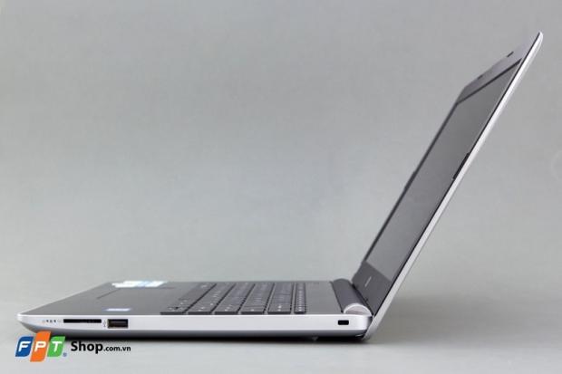 Cạnh phải chỉ được trang bị 1 cổng USB 2.0 và 1 khe cắm thẻ nhớ chuẩn SD, khóa Kensington.