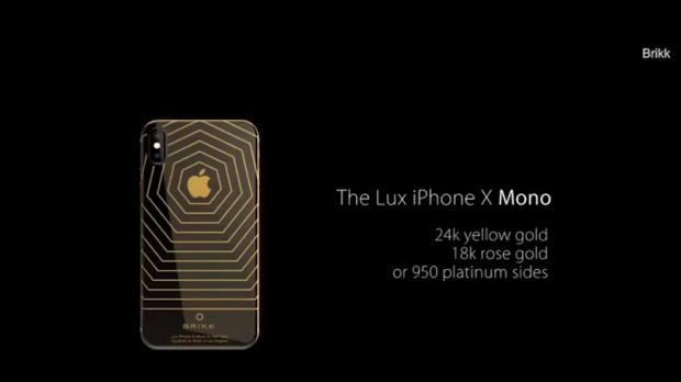 Công ty thiết kế Brikk, có trụ sở ở Los Angeles, Mỹ vừa công bố một dòng sản phẩm xa xỉ mới trên trang web của họ, tiếp sau buổi ra mắt bộ ba iPhone 2017 của Apple hồi đầu tuần này. Trong đó, đáng chú ý có một số mẫu iPhone X đặc biệt đắt đỏ, bao gồm 2 mẫu thiết kế từ vàng nguyên khối và các mẫu khác nạm kim cương.