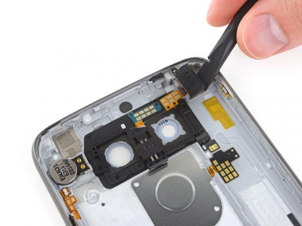 Thân máy của LG G5 được mở bung ra khá dễ dàng sau khi tháo hai con vít nhỏ và nạy lên bằng một dụng cụ đơn giản. LG hoàn toàn không dùng keo để dán bộ phận này như Samsung. Màn hình của thiết bị được gắn liền với mặt trên để nhường chỗ cho viên pin tháo rời được bên dưới.