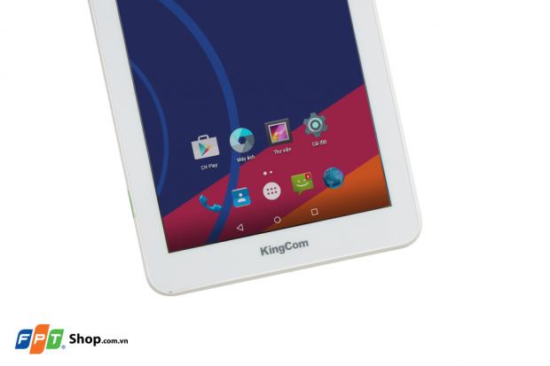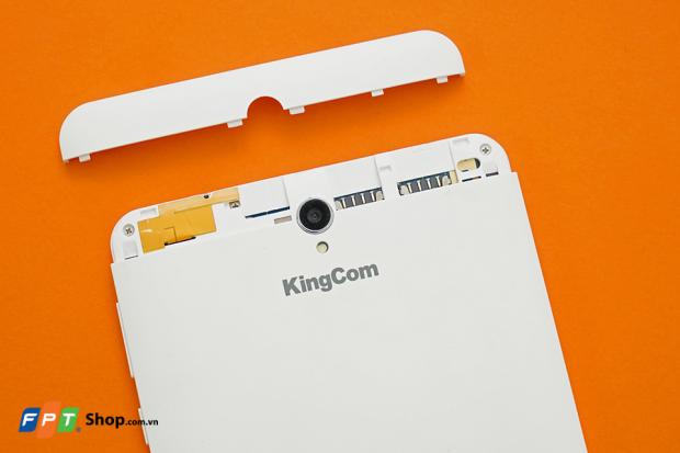 Các phím điều hướng đặc trưng của Android được đặt vào bên trong màn hình. Phía dưới là một logo KingCom màu sáng bạc nổi bật.
