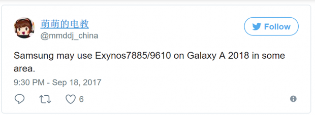 Cụ thể, theo thông tin rò rỉ mới nhất từ trang Androidheadlines, nhiều khả năng bộ 3 Galaxy A (2018) trong năm tới sẽ được Samsung tăng cường sức mạnh bằng hai vi xử lý tầm trung mới của hãng là Exynos 7885 và 9610. Trong đó, vi xử lý Exynos 9610 sẽ chỉ xuất hiện trên dòng sản phẩm này ở một số vùng lãnh thổ nhất định.