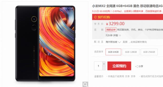 Vẫn như lần trước thì Mi Mix 2 sẽ có 3 phiên bản: 6 GB RAM + 64 GB ROM, 6 GB RAM + 128 GB ROM và 6 GB RAM + 256 GB ROM có giá bán lần lượt là 3.299 NDT (khoảng 11.5 triệu), 3.599 NDT (khoảng 12.5 triệu) và 3.999 NDT (khoảng 14 triệu).