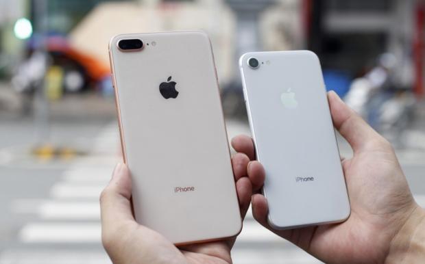 Hai sản phẩm nêu trên đều chưa được kích hoàn. Mẫu iPhone 8 có màu trắng trong khi iPhone 8 Plus là bản màu hồng.