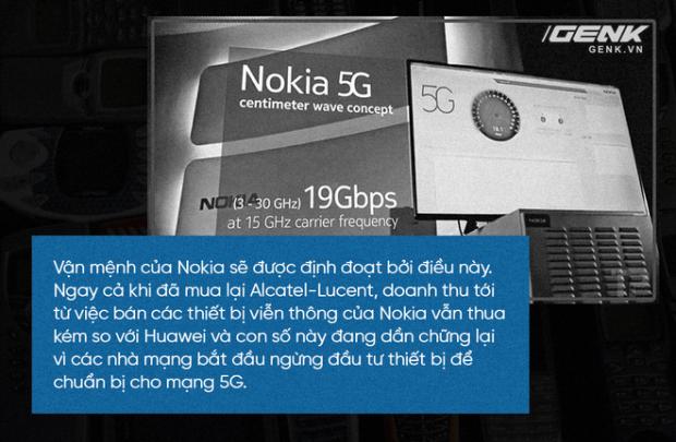 Ngay cả khi đã mua lại Alcatel-Lucent, doanh thu tới từ việc bán các thiết bị viễn thông của Nokia vẫn thua kém so với Huawei và con số này đang dần chững lại vì các nhà mạng bắt đầu ngừng đầu tư thiết bị để chuẩn bị cho mạng 5G. Nếu không thể vượt qua được thử thách này, rất có thể Nokia sẽ chỉ còn là cái bóng của ông vua thời hoàng kim và vĩnh viễn đi vào dĩ vãng.