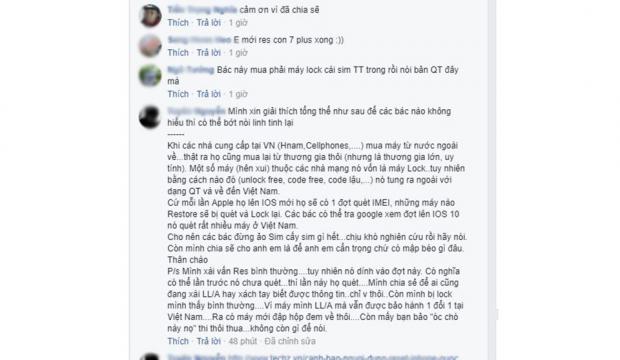 Ngay tại thảo luận này, một thành viên khá am hiểu công nghệ đã giải thích rằng tình trạng biến thành iPhone Lock từ iPhone quốc tế thường xảy ra khi các thiết bị thuộc nhà mạng vốn ở dạng bị khóa được unlock và tung ra ngoài với dạng QT rồi về đến Việt Nam. Cứ mỗi lần Apple tung ra phiên bản mới họ sẽ có 1 đợt quét IMEI, những máy nào Restore sẽ bị quét và Lock lại.