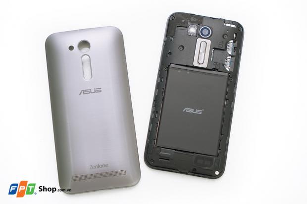 Khi mở nắp lưng, chúng ta có thể thấy 2 khe cắm micro SIM, khe cắm thẻ nhớ microSD và viên pin Li-Po có thể tháo rời. Viên pin này có dung lượng 2070 mAh.