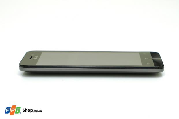 Phía trên màn hình là sự có mặt của dải loa ngoài, camera selfie và logo Asus màu sáng bạc.