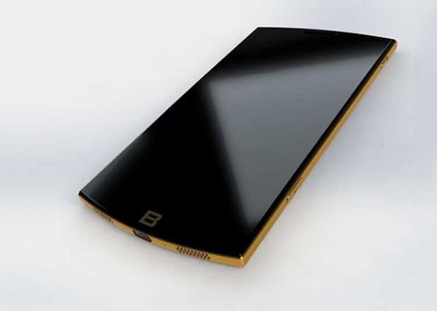 Concept bắt mắt với viền vàng và mặt trước hoàn toàn màu đen, điểm nhấn là chữ B ở góc dưới. Đây có thể là vị trí đặt cảm biến vân tay loại một chạm của thiết bị.