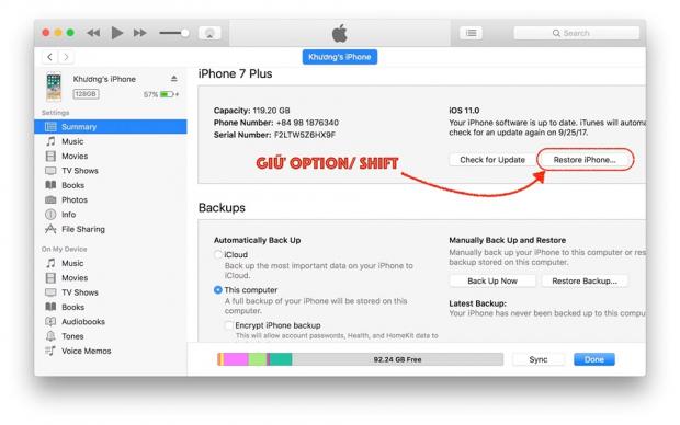 Bước 4: Quay trở lại ứng dụng iTunes, bạn thực giữ phím Option trên Mac hoặc phím Shift trên Windows, click vào nút Restore, lúc này sẽ hiện một cửa sổ nhỏ cho cho chúng ta chọn firmware, lúc này tìm đúng thư mục bạn đã lưu phiên bản iOS 10.3.3 vừa tải về lúc nãy và thực hiện cài đặt.
