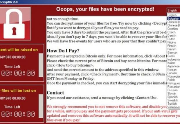 Một dòng thông báo cho biết máy tính đã bị mã hóa dữ liệu, phải đóng tiền cho hacker.