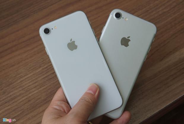 iPhone 8 vừa về Việt Nam, cũng là thời điểm đánh dấu iPhone 7 tròn một năm tuổi đời. Đây là phiên bản màu bạc của cả 2. Trong khi iPhone 7 giữ nguyên màu nhôm thì màu bạc trên iPhone 8 chuyển sang trắng ngọc trai. Có thể nhiều người sẽ thích màu này trên iPhone 8 hơn.