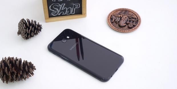 Galaxy A7 2017 có thiết kế trẻ trung và bắt mắt, máy có khung viền bằng kim loại chắc chắn, mặt sau phủ kính bóng bẩy. Sản phẩm này còn hỗ trợ cả chống nước IP68 giúp bạn thoải mái khi đi dưới trời mưa hay mang vào nhà tắm.