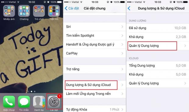Bước 2: Chọn Dung lượng & Sử dụng iCloud > Quản Lý dung lượng