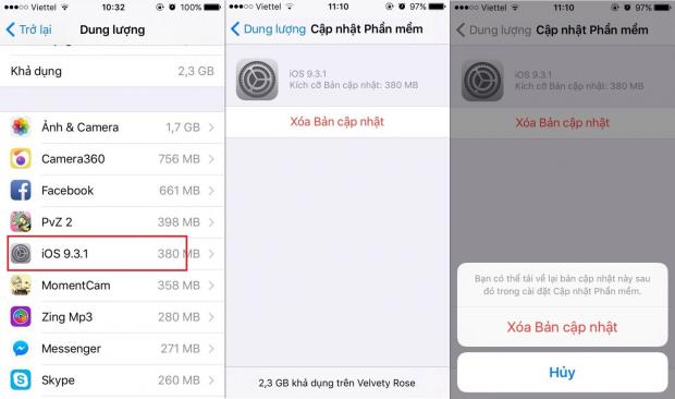 Bước 3: Trong mục Quản lý dung lượng, tìm và chọn iOS 9.3.1 (tùy thuộc vào phiên bản iOS mà bạn đang dùng)