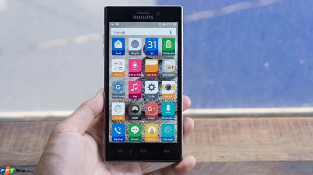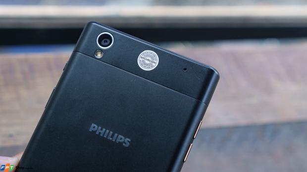 Chiếc smartphone mới nhất của Philips có kiểu dáng vuông vắn với 4 góc được bo tròn nhưng vẫn bị cấn nhẹ khi cầm trên tay. Máy sở hữu thiết kế nguyên khối, trong đó phần nắp lưng hoàn thiện bằng kim loại. Tuy nhiên, khu vực phía trên mặt lưng lưng, tiệm cận với camera chính và đèn Flash LED có thể tháo rời để thay thế SIM và thẻ nhớ microSD.