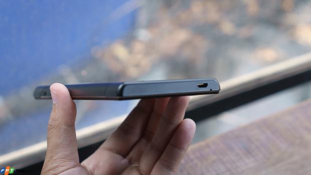 Trải nghiệm cầm, nắm Philips V787 ở mức khá, ôm và rất chắc tay, mặc dù còn bị cấn nhẹ ở 4 góc. Phần mặt lưng được vát cong sang hai phía bên trái và phải, ôm sát với khung viền và mặt trước nên khi nhìn tổng thể thì Philips V787 trông rất liền lạc. Nhược điểm là mặt lưng này bám khá nhiều mồ hôi và dấu vân tay trong quá trình sử dụng.