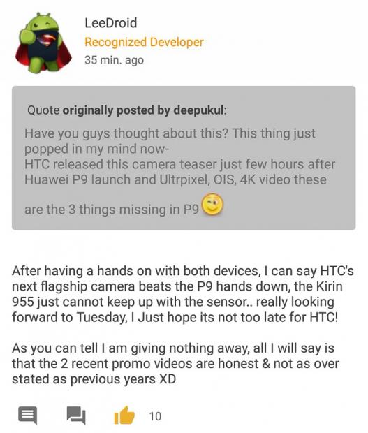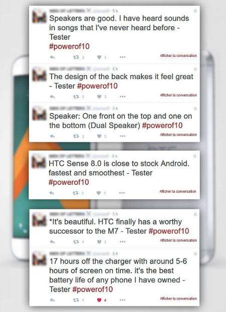 Sau khi lộ diện gần như hoàn toàn thông qua các tin đồn rò rỉ, một người được cho là đã có may mắn sử dụng sớm chiếc HTC 10 cho biết, đây là một thiết bị hoàn hảo với thời lượng pin tốt, âm thanh ấn tượng, chạy nhanh và hoạt động cực kỳ ổn định, thông qua một số chia sẻ trên Twitter.