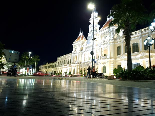 Thử phơi sáng Ủy ban nhân dân thành phố Hồ Chí Minh với thông số ISO 50, phơi sáng 0.5 giây. Ảnh trong trẻo và giữ lại được nhiều chi tiết hơn khi chụp với chế độ Auto