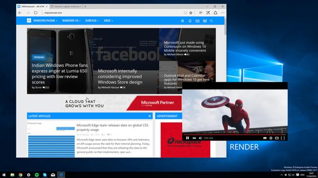 Theo MSPowrUser, Microsoft đang có kế hoạch mang tính năng tương tự chế độ 'Picture-in-Picture' trên các thiết bị iPad chạy iOS 9 lên các sản phẩm máy tính, tablet hoặc có thể là cả smartphone chạy Windows 10.