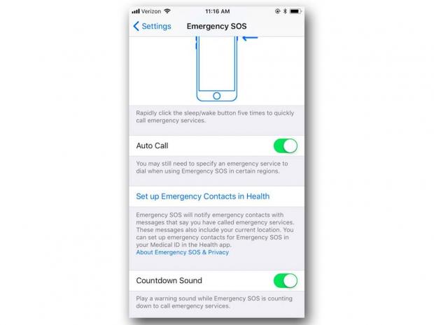 Chức năng của tính năng này là biến nút sleep/wake thành nút bấm mỗi khi gặp nguy hiểm và người dùng nên kích hoạt ngay tính năng này ngay bây giờ. Emergency SOS có cơ chế hoạt động khá đơn giản. Cụ thể, khi bật tính năng này lên, nút bấm ở cạnh bên phải sẽ gọi ngay cho đường dây nóng, người dùng chỉ cần bấm nhanh nút này 5 lần.