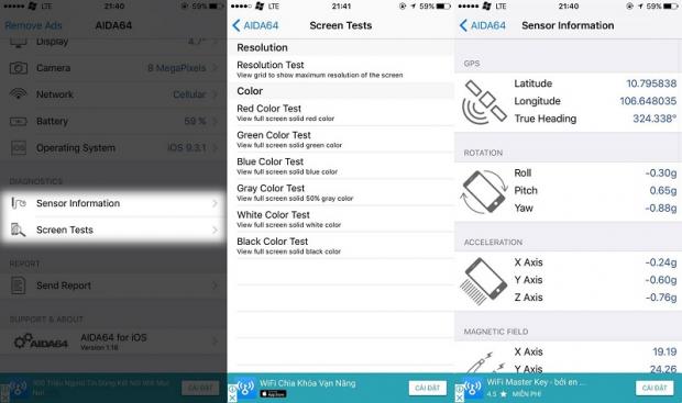 Ngoài ra, AIDA64 còn cung cấp thêm hai công cụ kiểm tra màn hình và cảm biến.