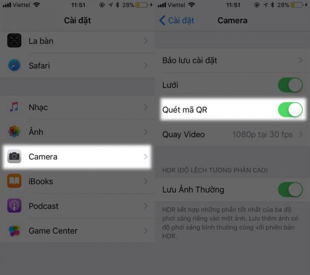 Chắc chắn các ứng dụng hỗ trợ quét mã QR sẽ trở nên ít được người dùng quan tâm hơn, vì trên iOS 11, Quét mã QR đã được đưa vào thành tính năng mặc định. Để bật tính năng này, bạn vào Cài đặt > Camera > Quét mã QR.