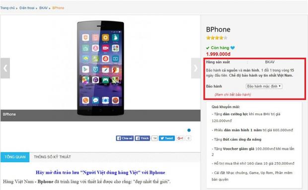 Theo đó khi mua BPhone tại đây, khách hàng sẽ được bảo hành cả nguồn và màn hình, 1 đổi 1 trong vòng 15 ngày đầu tiên cùng nhiều khuyến mãi khác. Trong khi đó theo như trang chủ của BKAV thì chế độ của công ty chỉ là bảo hành 12 tháng, miễn phí đổi trả trong vòng 14 ngày.