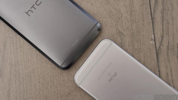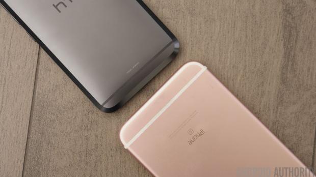 Mặt sau hai máy cùng làm bằng nhôm nhưng HTC 10 cong, vát kim cương sắc cạnh, trong khi iPhone 6s Plus phẳng và bo cong