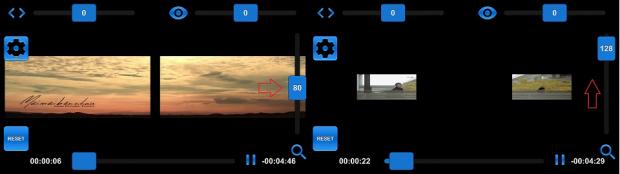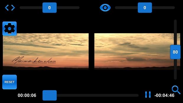 Khi chọn theo hiển thị ngang 180 độ, màn hình máy sẽ chia làm 2 và xuất hiện các cài đặt như thời gian, chỉnh nét, xa gần.