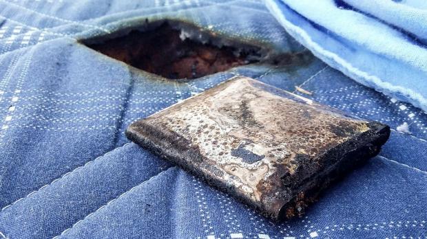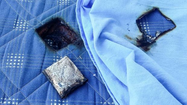 Theo đó, cậu bé đã sạc chiếc điện thoại qua đêm và trong lúc đang nằm trên giường, chiếc Galaxy S3 của cậu ta bất ngờ phát nổ và bị cháy xém, đồng thời để lại một lỗ hổng rất lớn, giống như ở hình ảnh bên dưới.