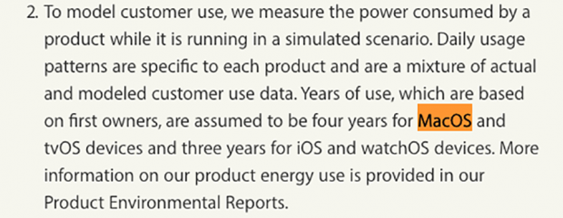 Theo đó, khi chia sẻ về việc một sản phẩm do công ty sản xuất sẽ có thời lượng sử dụng trong khoảng thời gian bao nhiêu năm, Apple cho biết 'Thông thường, con số này đối với người dùng MacOS và tvOS là 4 năm, trong khi đối với iOS và watchOS là 3 năm.'.