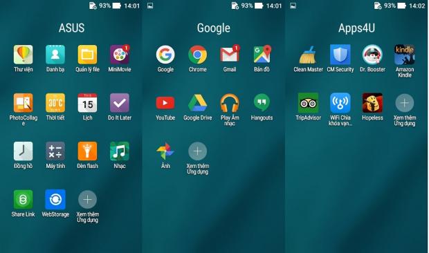 **Hình ảnh giao diện trên Zenfone Go và Go Plus: